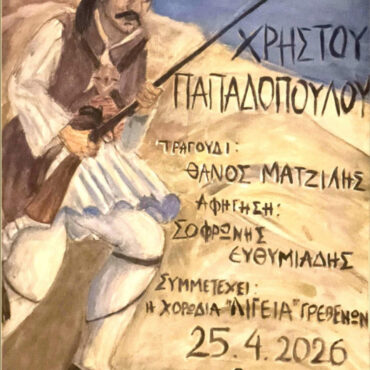 «Παιδιά της Σαμαρίνας-200 χρόνια μνήμης και τιμής»: Μνήμη και Ιστορία ζωντανεύουν στα Γρεβενά σε μια παράσταση έμπνευσης και δημιουργίας Χρήστου Παπαδόπουλου. Ο Δήμος Γρεβενών σας προσκαλεί σε μια σημαντική επετειακή εκδήλωση, τιμώντας τη συμπλήρωση 200 ετών από την Έξοδο του Μεσολογγίου και τη συμβολή των Σαμαριναίων αγωνιστών. Η εκδήλωση θα πραγματοποιηθεί το Σάββατο 25 Απριλίου 2026 και ώρα 20:00, στο Κέντρο Πολιτισμού Γρεβενών, με την παρουσίαση της μουσικοθεατρικής παράστασης «Παιδιά […]